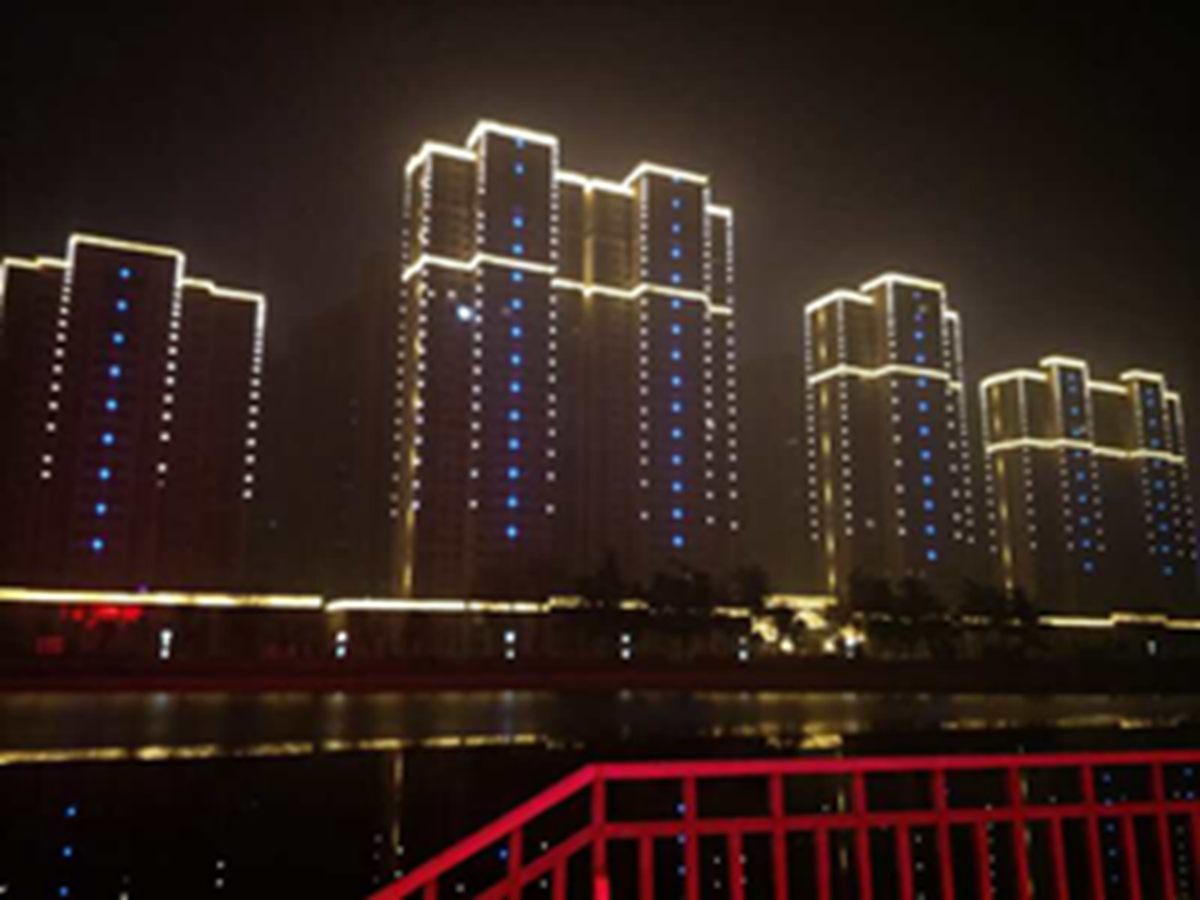 金(jin)河(he)灣(wan)小(xiao)區(qu)緊(jin)挨護城河,整(zheng)體(ti)構(gou)思(si)以(yi)“黑(hei)亱(ye)的星(xing)空”爲主,突齣(chu)頂部輪廓,體現(xian)整(zheng)體(ti)佈(bu)跼(ju),主要以(yi)點光源(yuan)作爲點綴(zhui),使樓體(ti)呈現(xian)齣(chu)閃(shan)閃(shan)髮光(guang)的(de)視覺體(ti)驗(yan),水(shui)中倒(dao)暎着,更(geng)彆(bie)有一(yi)番意境。