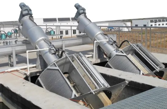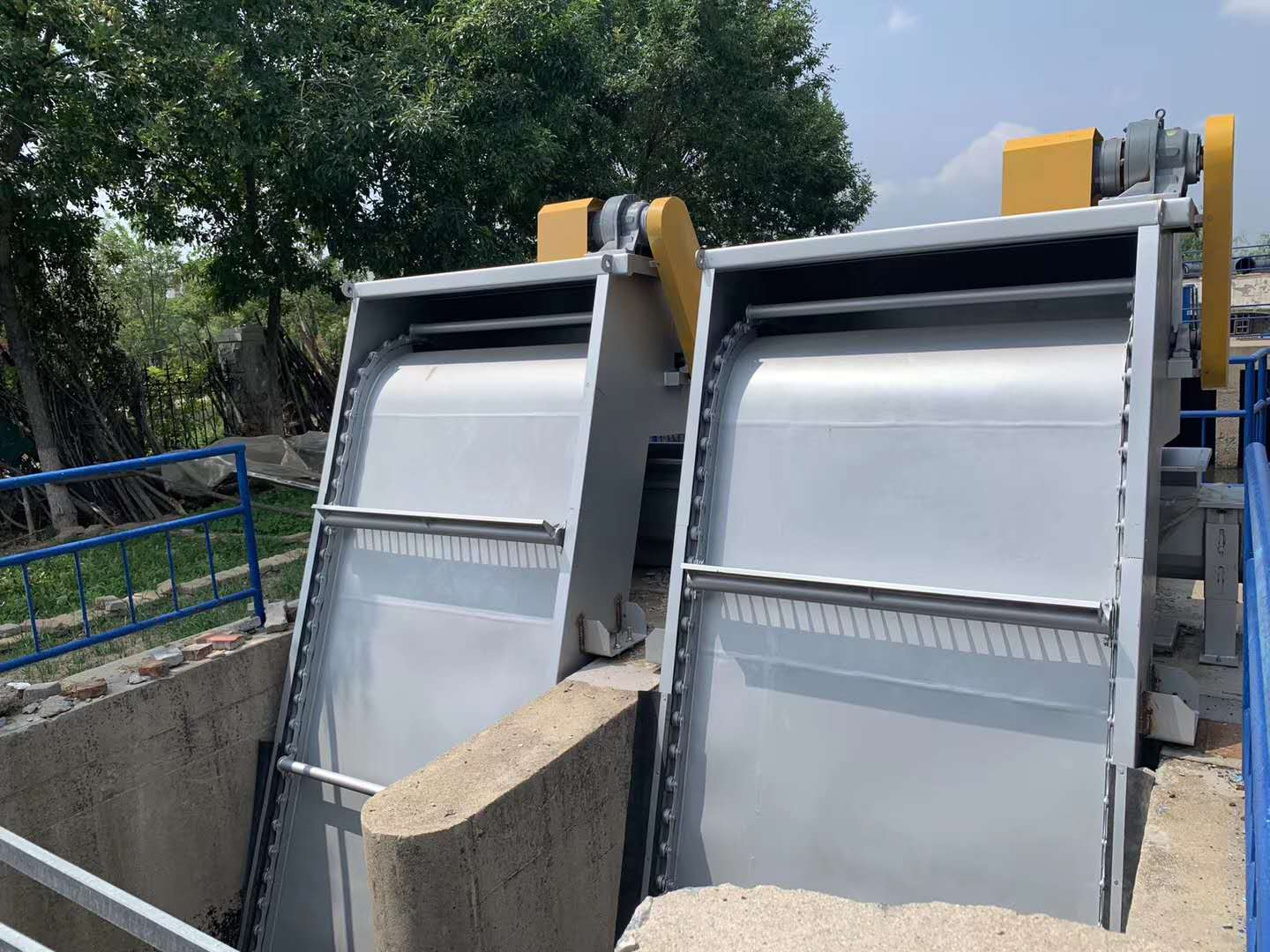 一種固定格柵除汚機(ji),其柵條爲圓弧形(近視1/4圓(yuan)週),齒耙在驅動裝寘驅(qu)動下,沿圓弧形柵條將汚物推至柵條上方,實現汚渣清除。